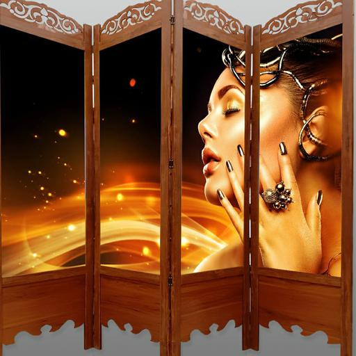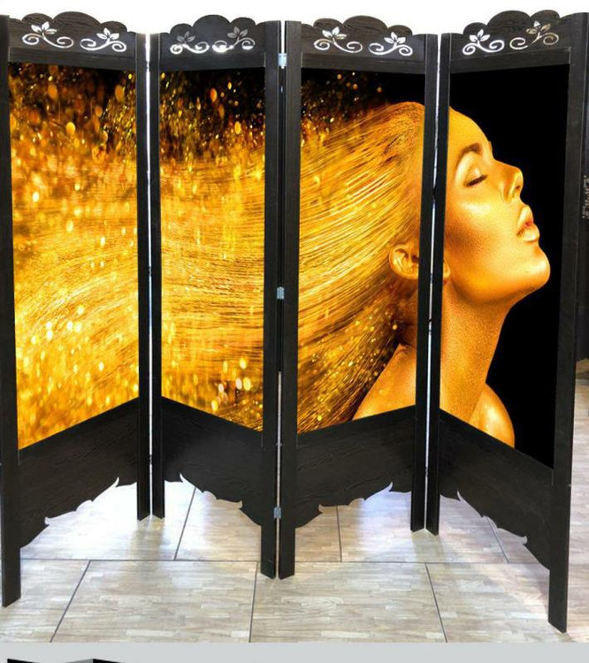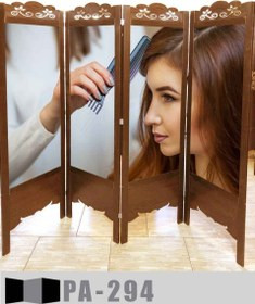 از سری پارتیشن های متحرک در زمینه آرایشگاهی است. جنس بدنه این پاراوان از MDF با روکش PVC بوده که قطر آن 3 میلی متر است. جنس چارچوب پاراوان نیز از پروفیل ام دی افی بوده که قطر آن 16 میلی متر است. کاغذ یا تصویر استفاده شده در این محصول از جنس فتوگلس بوده که کیفیت تصویر بالایی دارد. عرض هر لنگه این پاراوان ۴۵ سانتیمتر بوده که چهار لنگه آن به ۱۸۰ سانتی متر می رسد. ارتفاع این پاراوان نیز 180 سانتی متر بوده و استاندارد است. این پاراوان یکرو تصویر بوده ولی شما میتوانید آن را به صورت دورو تصویر نیز سفارش دهید. در صورتی که پاراوان را به صورت یکرو تصویر سفارش دهید پشت پاراوان به رنگ بدنه محصول خواهد بود.