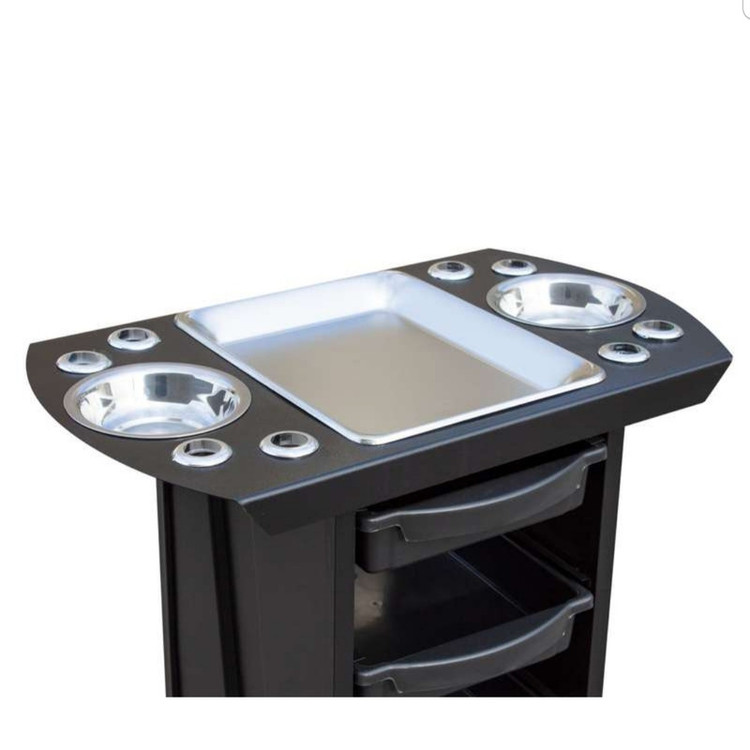 در قسمت بالای این ترولی استیلی استفاده شده که برای بسیاری از کارها مورد استفاده آرایشگر است به همین دلیل یکی از ترولیهای پرفروش آرایشگاهی است.