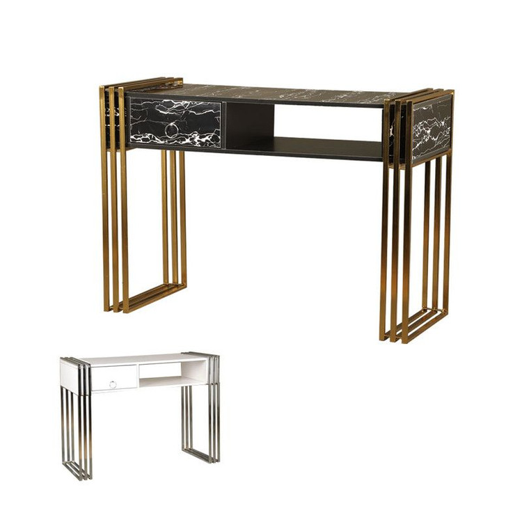 میز ناخن مدل مستطیل از جنس های گلاس و پایه های فلز آبکاری فورتیک می باشد که در طول زمان دچار افت کیفیت نمی شود. میز ناخن تک نفره مدل سه خط فورتیک دارای 1 کشو است.